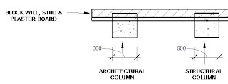 For an examples I have created a 600x600mm concrete (Architectural) Column and a 600x600mm concrete Structural Column. The wall they adjoin is a 200mm Block wall, with a stud lining and plaster board finish.